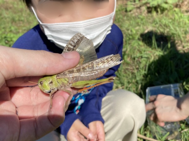 他のバッタに混じっていてもすぐわかる。段違いの飛距離とバサバサ音、後翅の模様でクルマバッタとの違いもわかる。 この日採集したのはオスだけ。発生ピークはもう少し後かも?