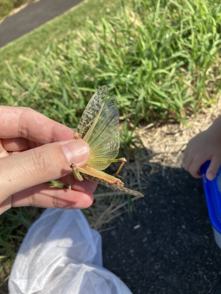 他のバッタに混じっていてもすぐわかる。段違いの飛距離とバサバサ音、後翅の模様でクルマバッタとの違いもわかる。 この日採集したのはオスだけ。発生ピークはもう少し後かも?