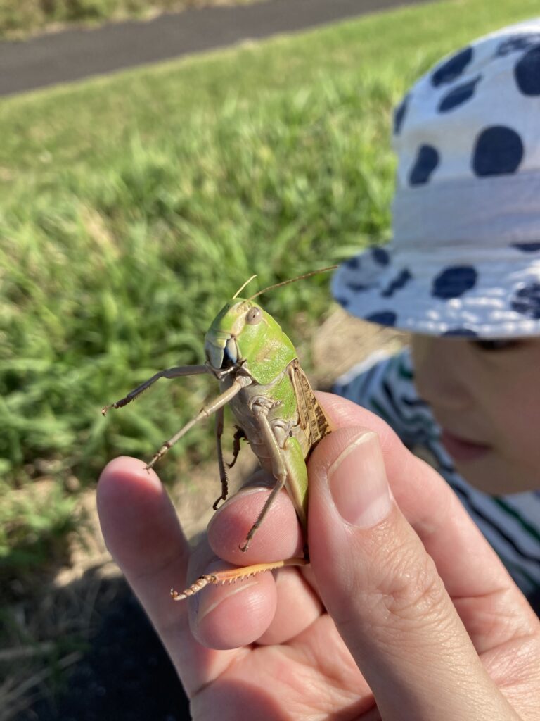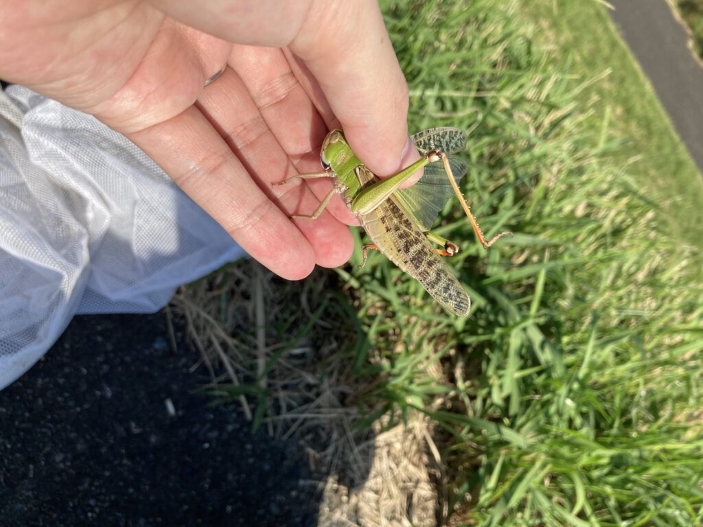 バッタの王様。うんちのサイズは大様。緑色のメスと褐色のオスを捕獲。