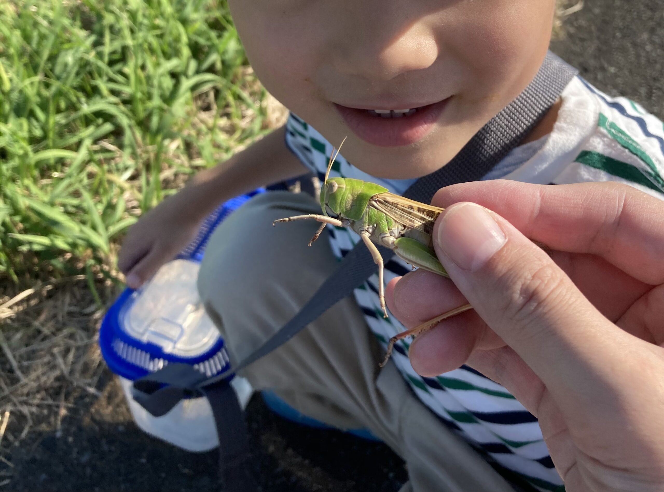 バッタの王様。うんちのサイズは大様。緑色のメスと褐色のオスを捕獲。