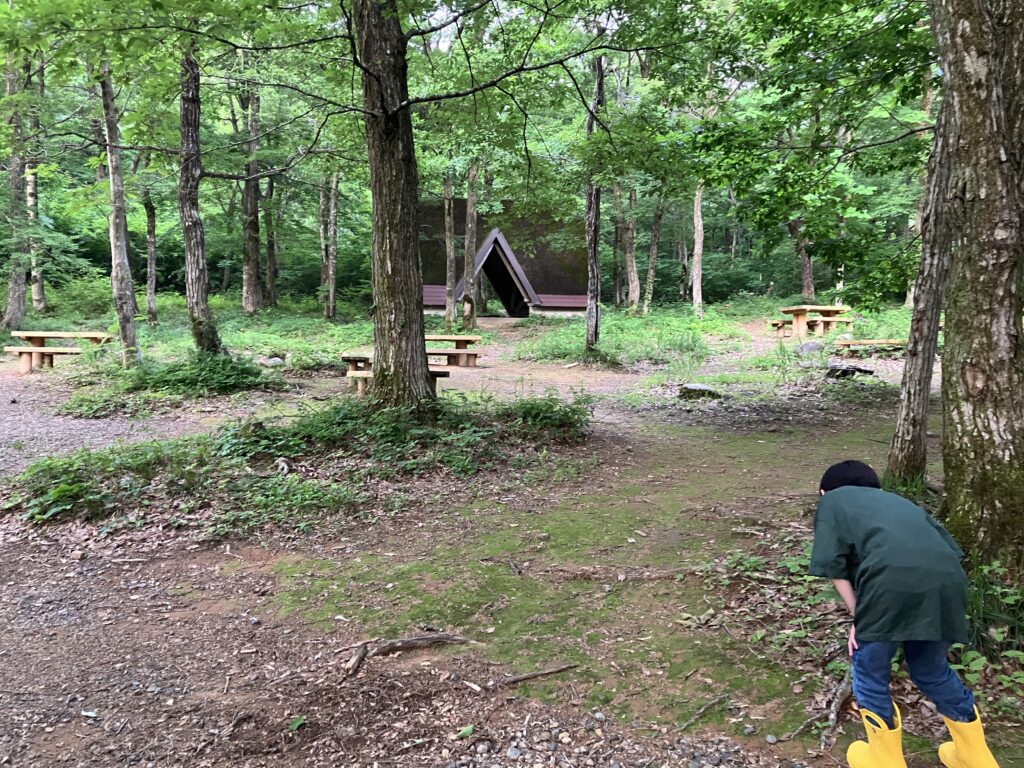 無人のどんぐりの森キャンプ場。小さな昆虫や巨大ヤマナメクジがうようよしてました。
