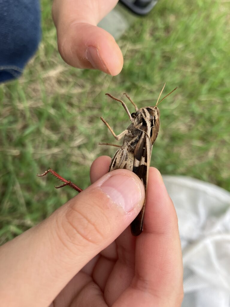 クルマバッタ緑色型と褐色型のオスを採集。大量にいたクルマバッタモドキと比較して数は少なく、羽音が大きく飛距離があって歯ごたえがある。 オスしか見つけることができなかったたので発生ピークはもう少し後か? 2022.09.25 新潟県田上町