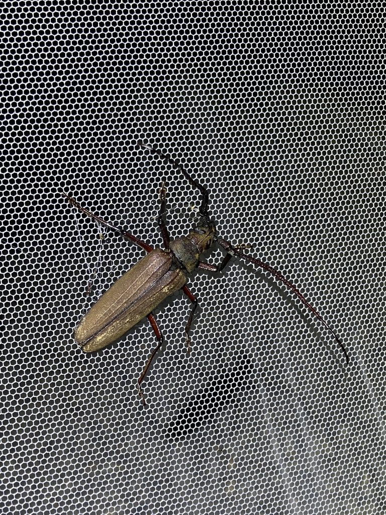 矢継ぎ早に10匹くらい飛んできて服や帽子にへばりついてカサカサ歩く姿はまさに地獄。ウスバカミキリ地獄