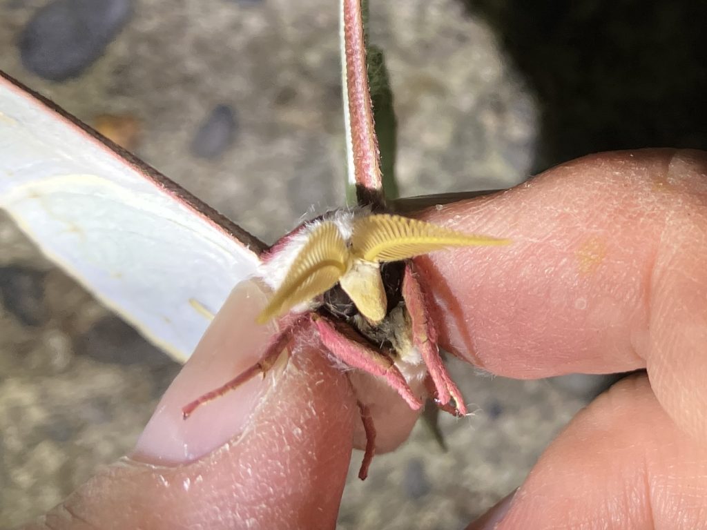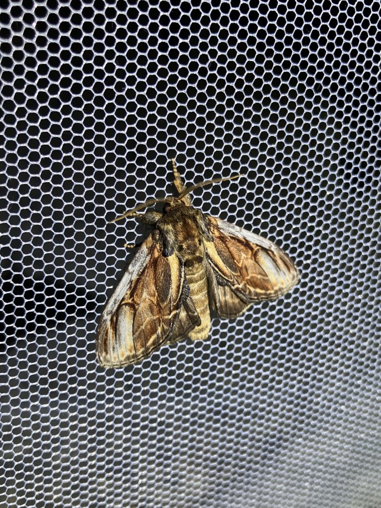 セダカシャチホコ。この冠毛がスタイリッシュで好き。飛んでる時は一瞬スズメガかと思うくらいデカいです。