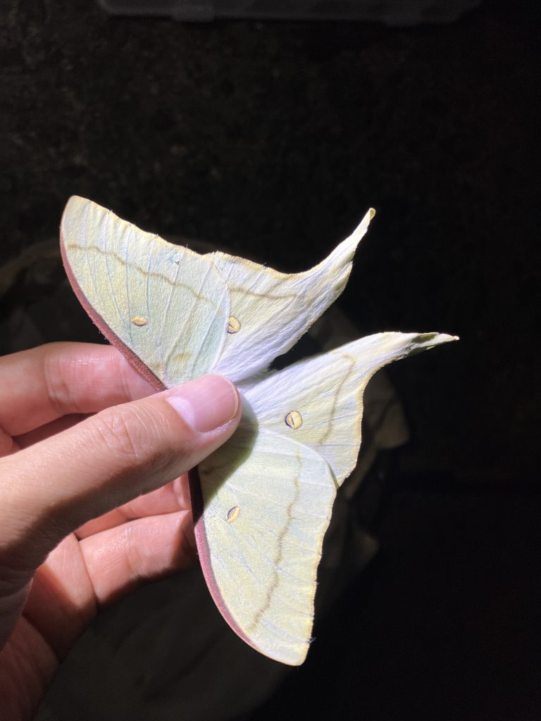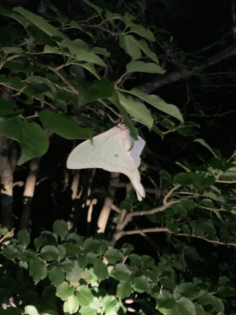 オオミズアオの夏型がちょうど発生多めだったのか1時間半ほどライトを炊いて、計10匹くらい飛んできました。