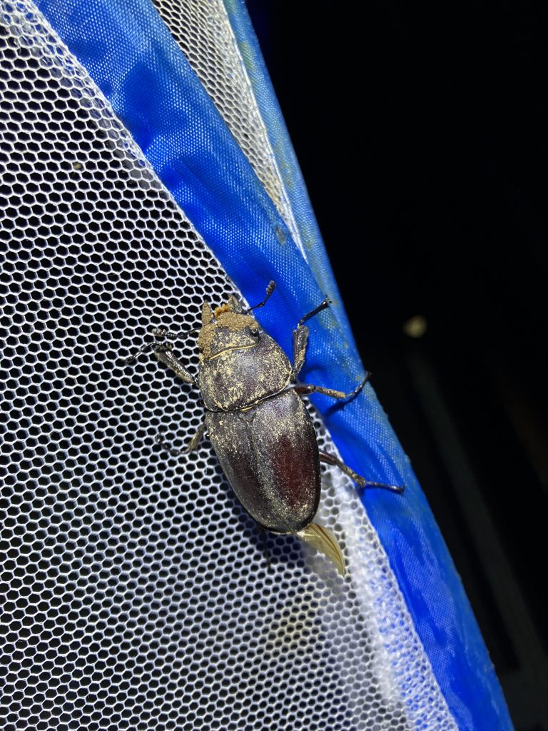 コフキコガネの粉がたくさんついたオス。今年は発生遅め?新鮮で粉の多いオスしか飛んでこなかったので発生シーズン初期か