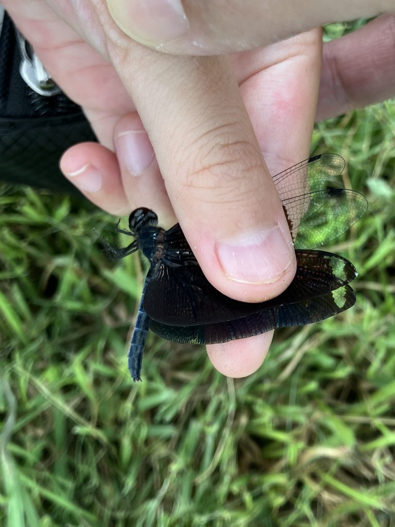 チョウトンボ。コシアキトンボに紛れてヨロヨロ飛ぶ黒いのが目立っていて捕まえたら案の定。