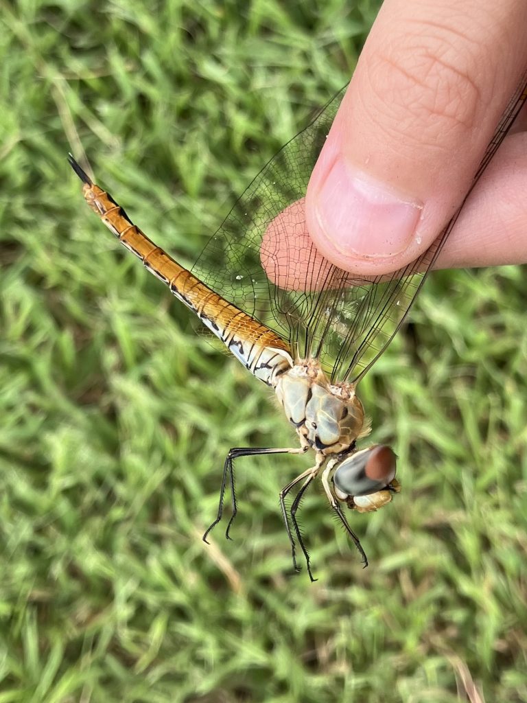 ウスバキトンボ。海を渡ってくるトンボだけあって翅がデカい。意外と標本にしても色が残りやすいトンボ。