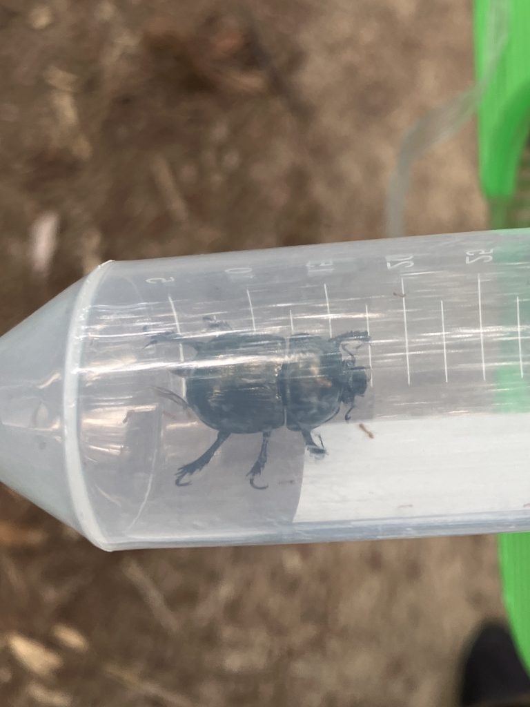 オオセンチコガネの死骸を発見。発生時期すこーし早めかなぁ。サル、クマ注意の立て札があるので野獣の糞の多い低山地にはけっこういるイメージ。あとシカ、イノシシの多い場所でも毎年見かけます。