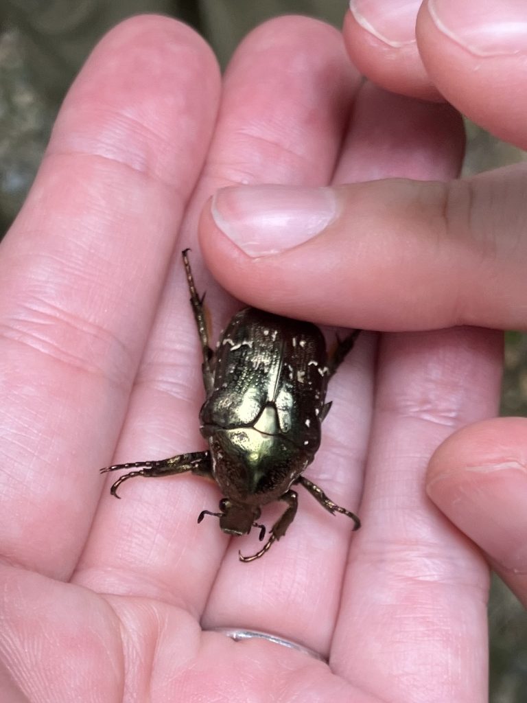 樹液にいたハナムグリの仲間。一見シロテンハナムグリぽいけれど、下翅が青っぽかったり短足な印象があるので多分シラホシハナムグリ?似たようなのがもう2種類いるのでじっくり見比べないと正直よくわからんです。