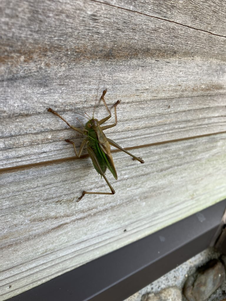 建物の壁に張り付いていたキリギリスのオス。
