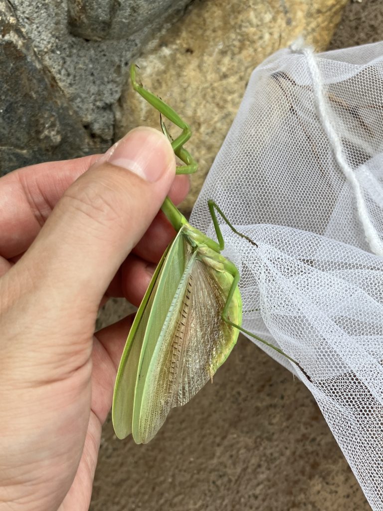 下翅は透き通ってる。(オオカマキリは黒色)と見分けやすい。