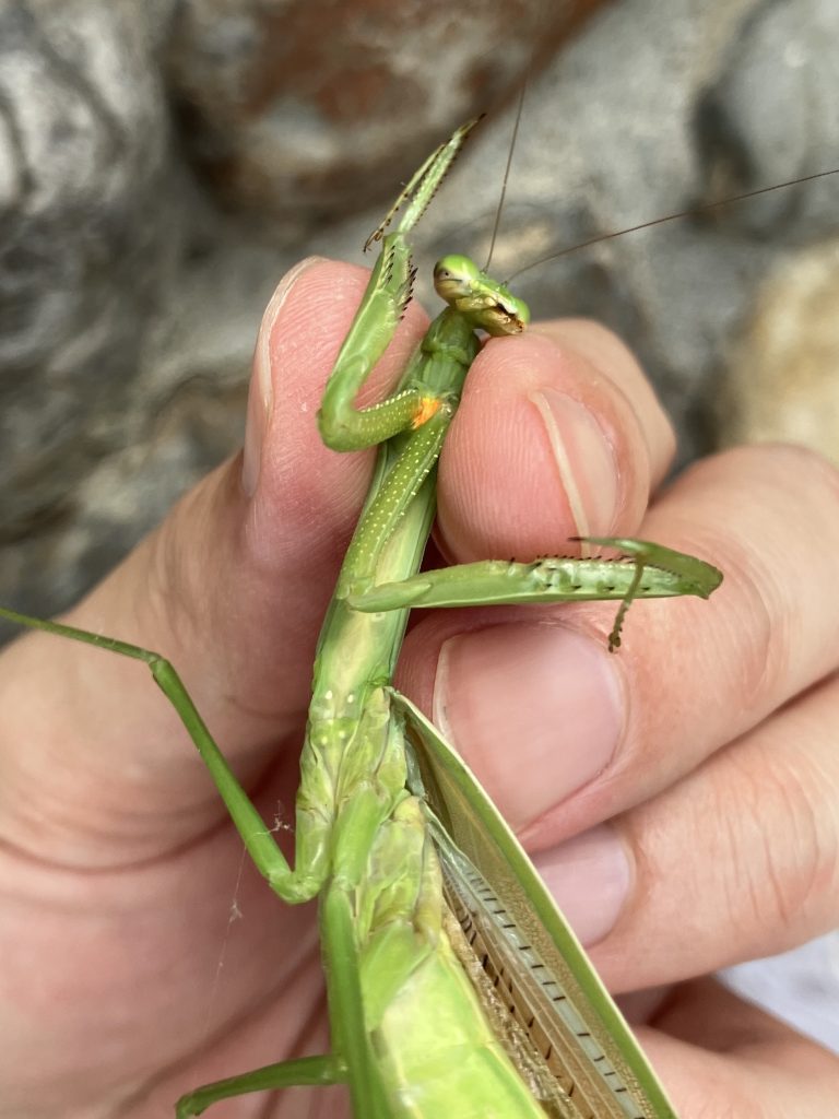 オオカマキリと似ているけれど胸がオレンジなのでチョウセンカマキリ。(オオカマキリは黄色)