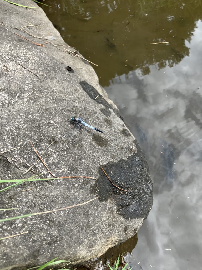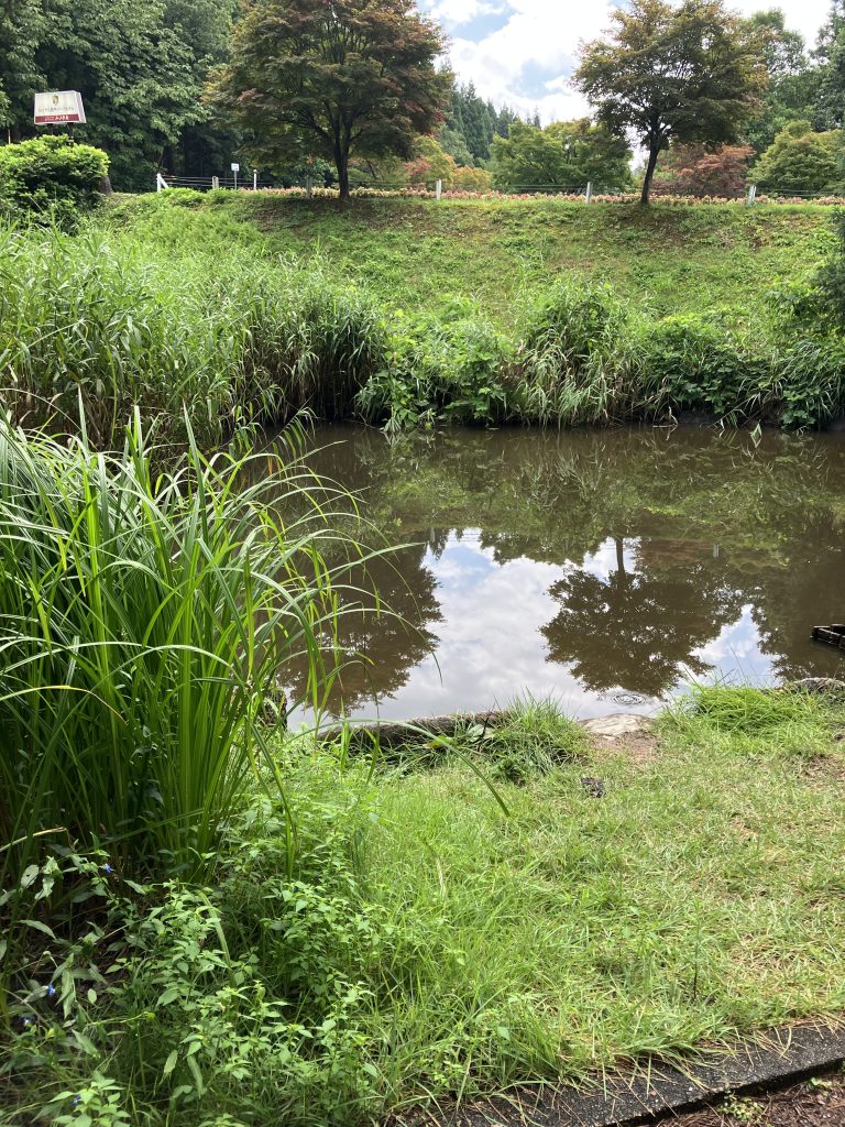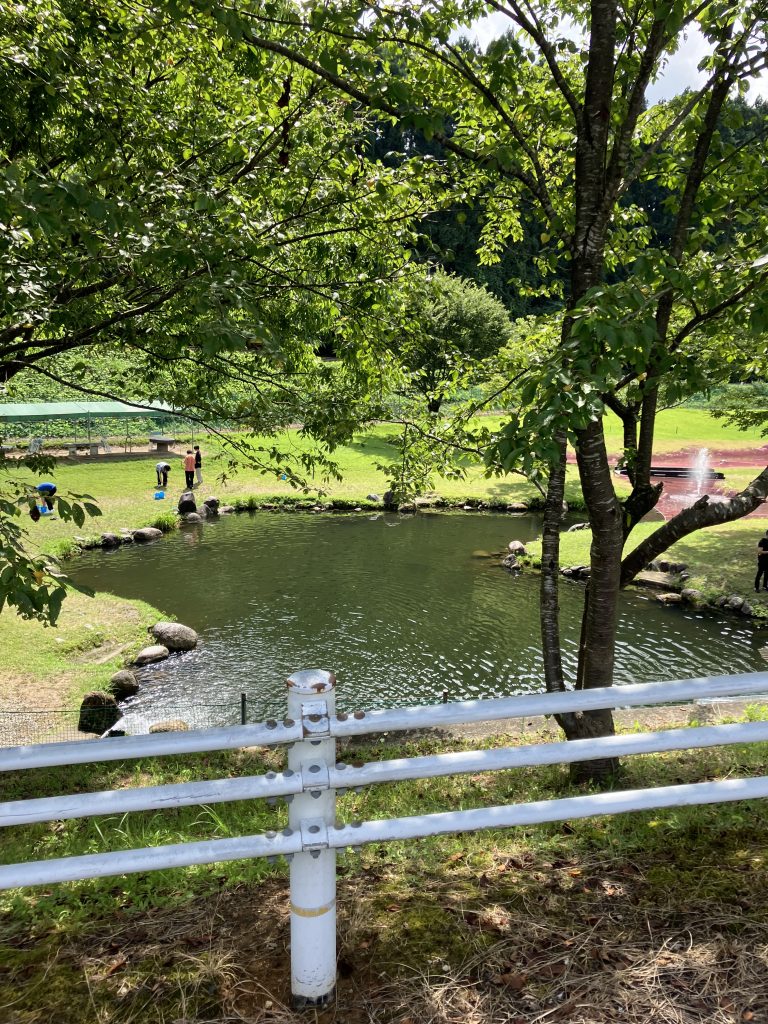 胎内昆虫の家の通り道にある胎内フィッシングパーク。トンボいるかなーと思って立ち寄ってみましたが、時間帯的にまばらに飛んでる程度。