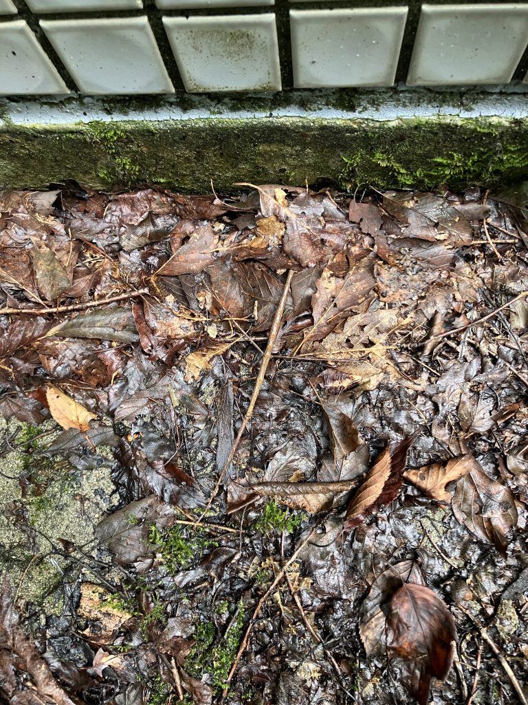 カマキリが入り込んでおり、胴体だけ食べられたアゲハチョウの翅が散乱してました。