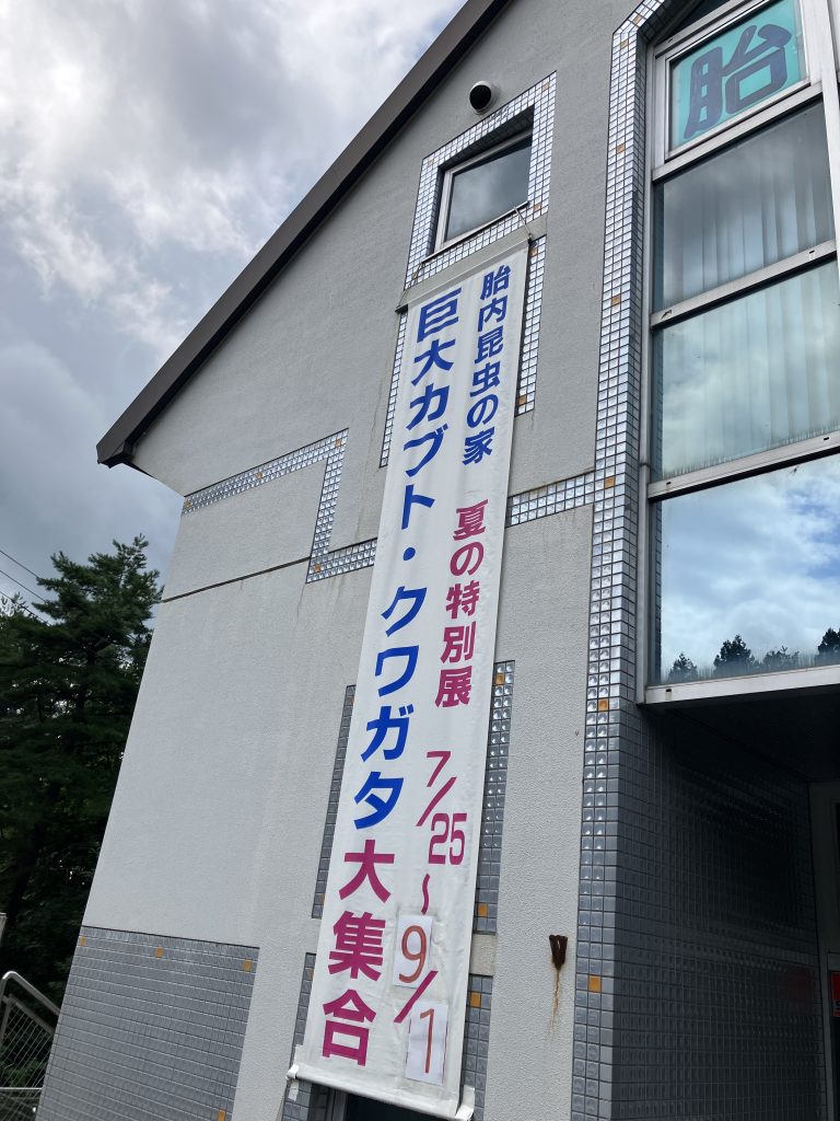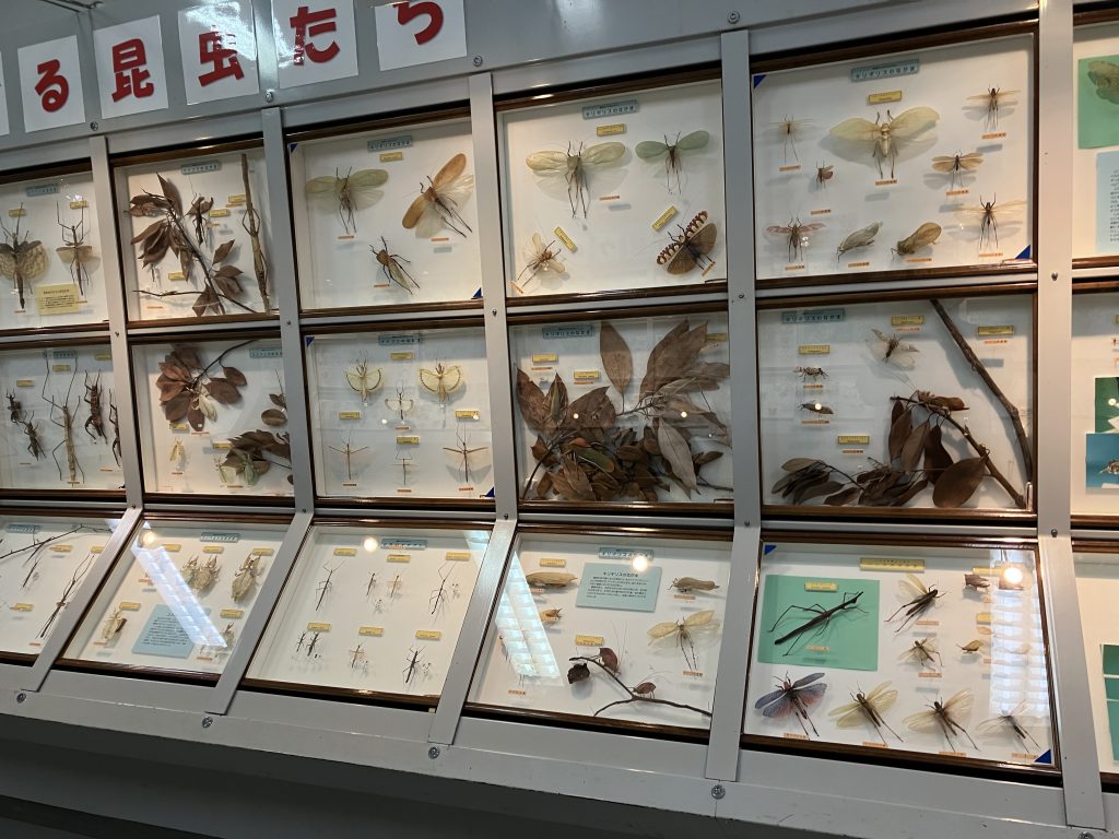 にきたものの、日が昇って暑くてかなわないので、胎内昆虫の家で標本見ながらクールダウン。