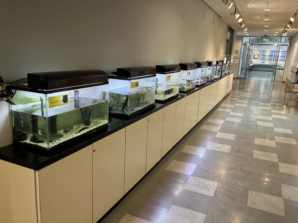 水生昆虫、タマムシ、スズムシ、ナナフシなどが常設展示。(タマムシはそろそろシーズン終わりな雰囲気)