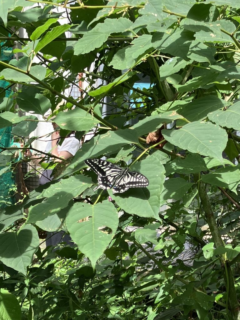 蝶のエサやり体験コーナーのアゲハチョウ。