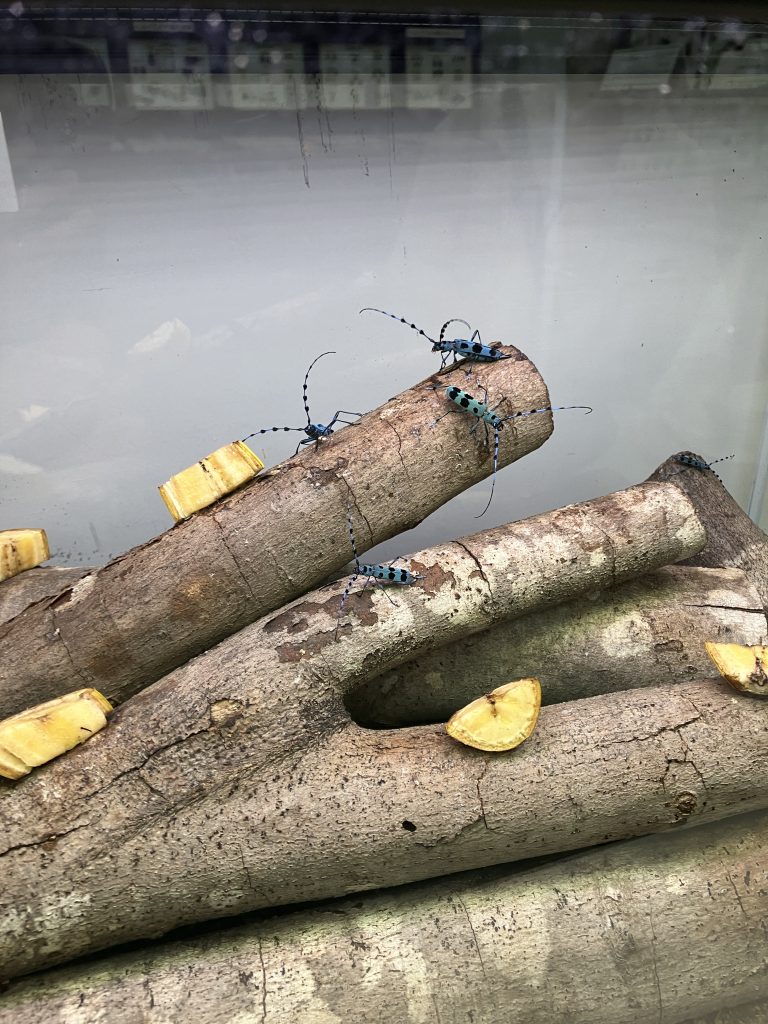 しかし、我が家の虫キッズはルリボシカミキリのほうが気になるようでじっくり観察してました。