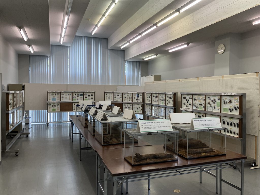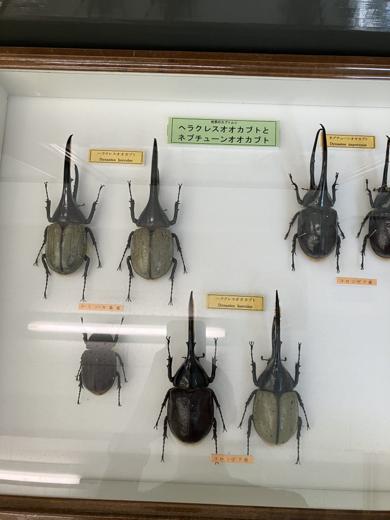 常設展示では見ることができない世界の大型カブクワの生体や標本が展示されており胸がおどります。ドイツ箱展示用のキャスターラック我が家にもほしい・・・