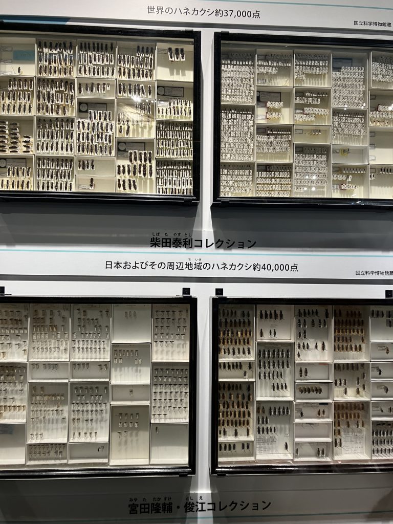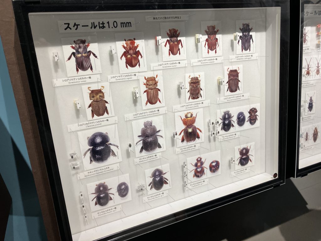 その他にも昆虫の習性や構造の紹介、標本だけでなく上野動物園のシカの糞を餌にしたオオセンチコガネ生体展示、人間社会との関わりについてなどなど、みどころは沢山。