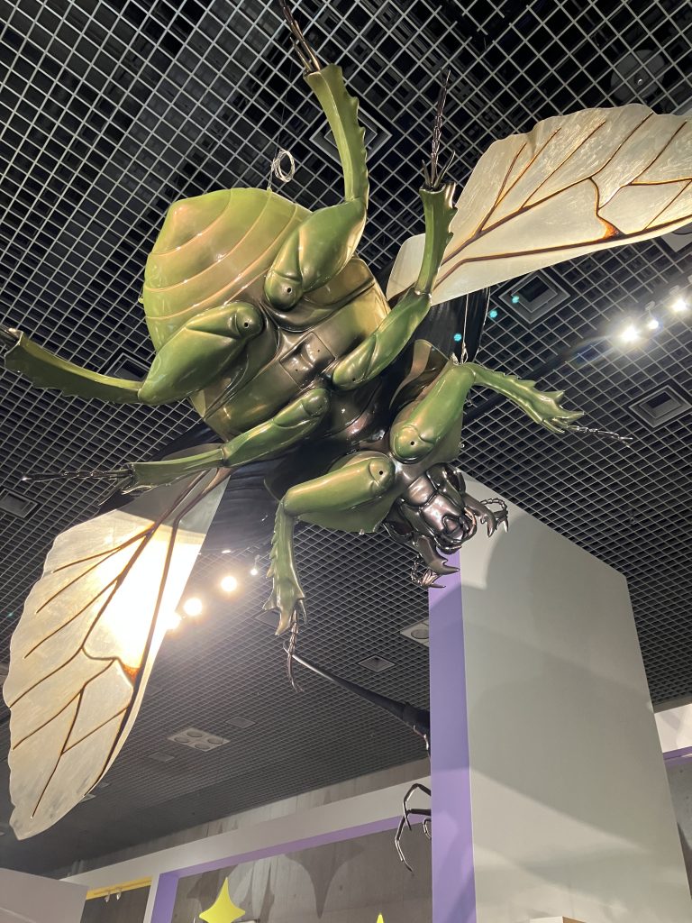 キッズが大喜びでみんな写真を撮っていた巨大フィギュア(オオセンチコガネ)。このほかにも寄生バチやウスバキチョウなどもありました。