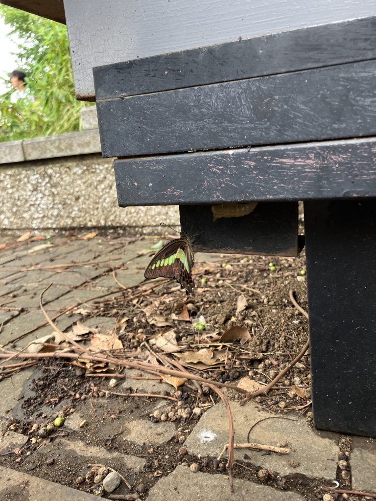 コインロッカーの足元でみつけた羽化したてのアオスジアゲハ。