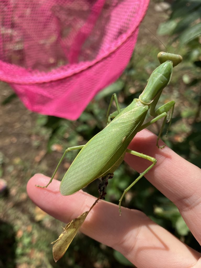 サクラの木を登っていたハラビロカマキリ。