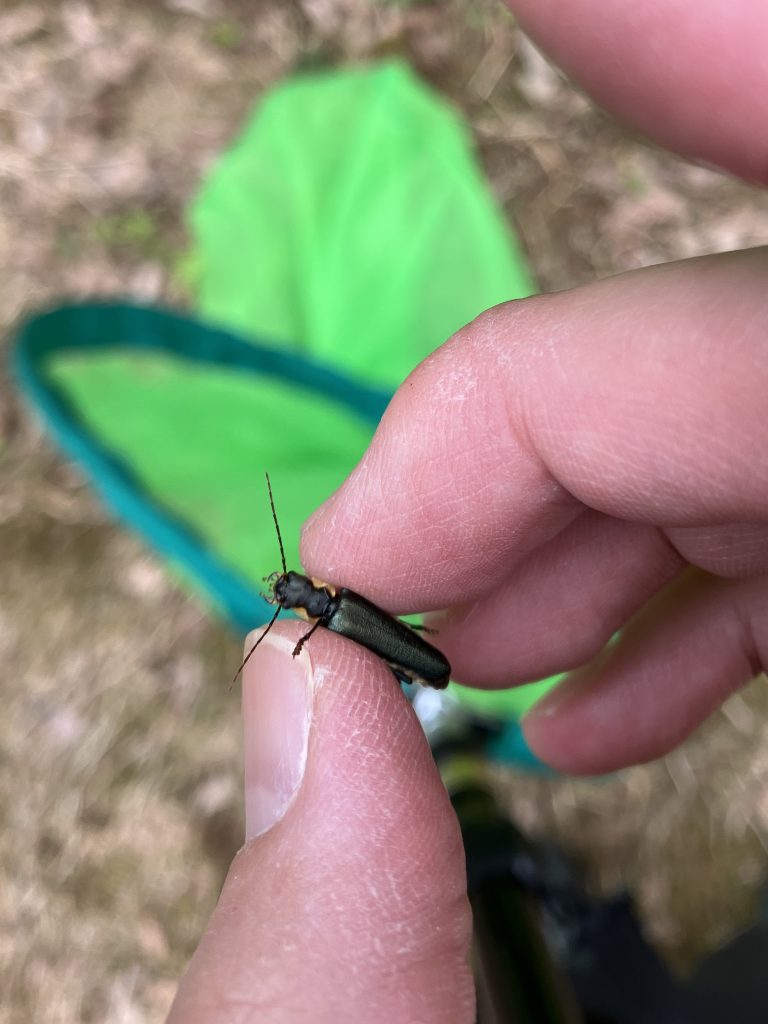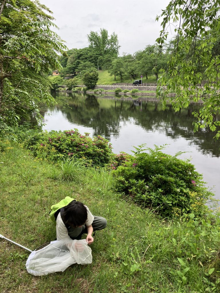 ハナバチ、ハエ、ハナアブなどが集まりそうな場所を中心に網を振ります。