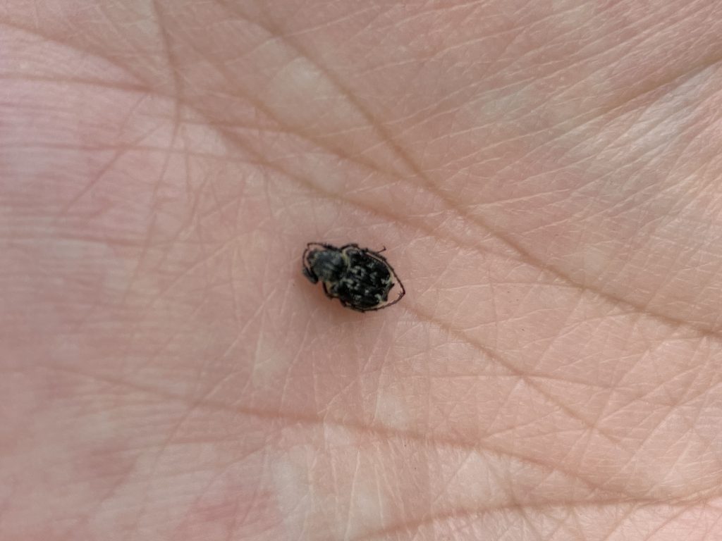 シロテンクロマイコガ、普段見かけない形で調べたらニセマイコガ科の蛾で、幼虫はクルミの葉を食べるそうです。オニグルミの葉をガサガサしていて採れたのでおそらくこれかなと。