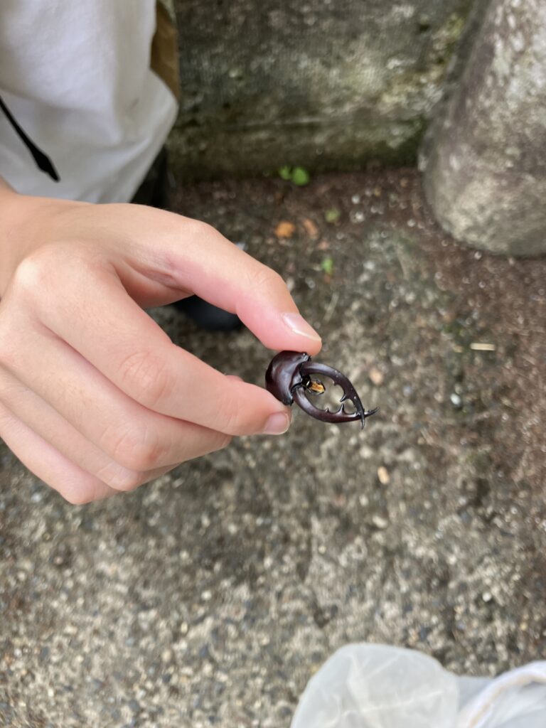 洞の中を探すとクワガタやゴキブリがいました。