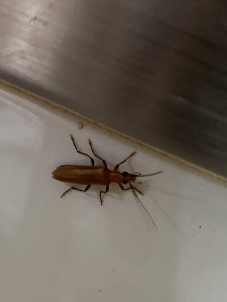 トイレに迷い込んでいたキイロカミキリモドキ。カミキリムシではない