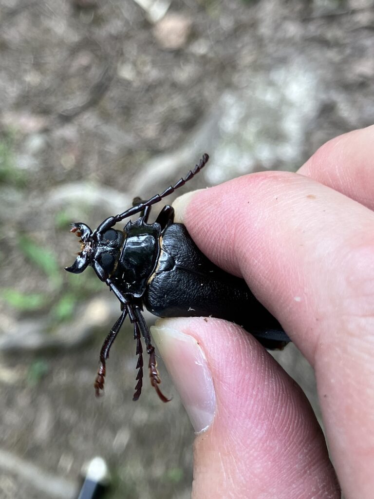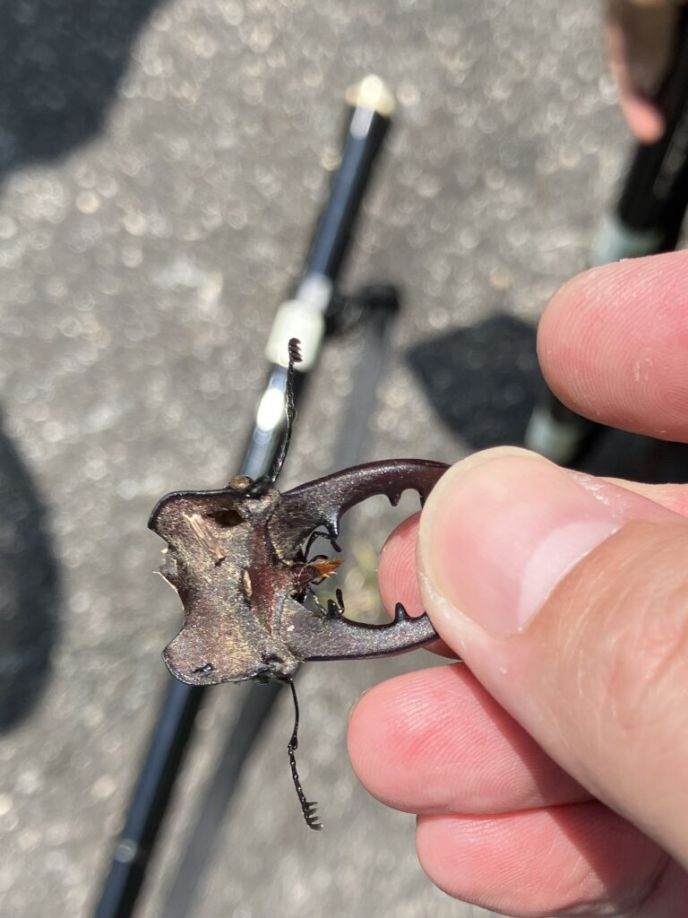 カラスに食べられたであろうノコギリクワガタの頭が落ちていたので活動はしているようです。