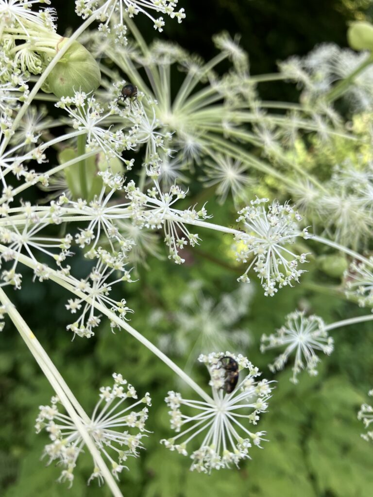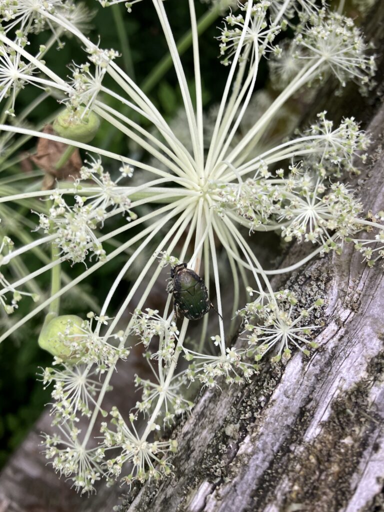 ウドの花が咲いていて色んな昆虫がきてました。