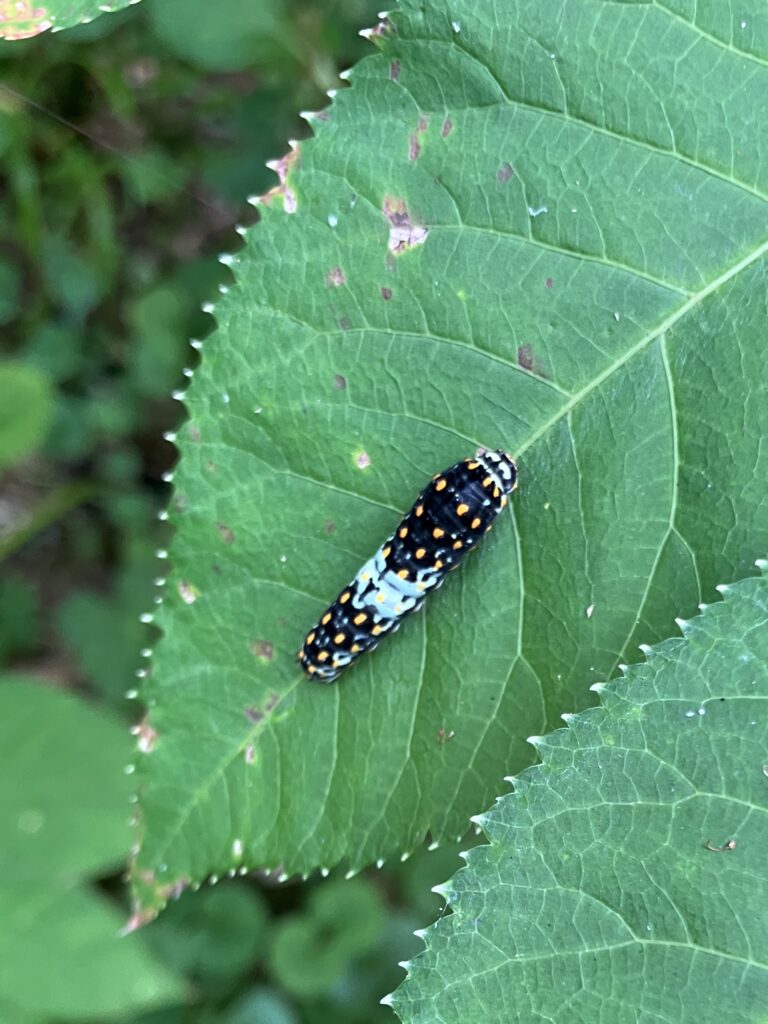 キアゲハの幼虫?ウドの葉を食べるのだろうか