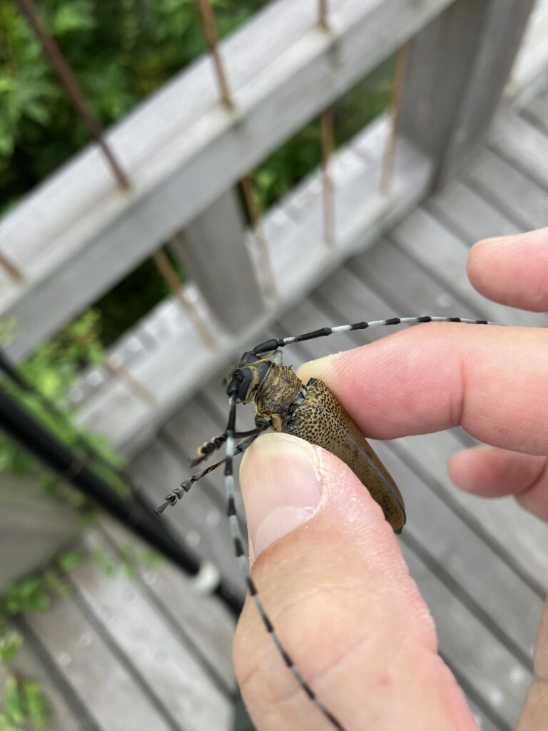 目の前に飛来したのでとっさに捕まえたクワカミキリ