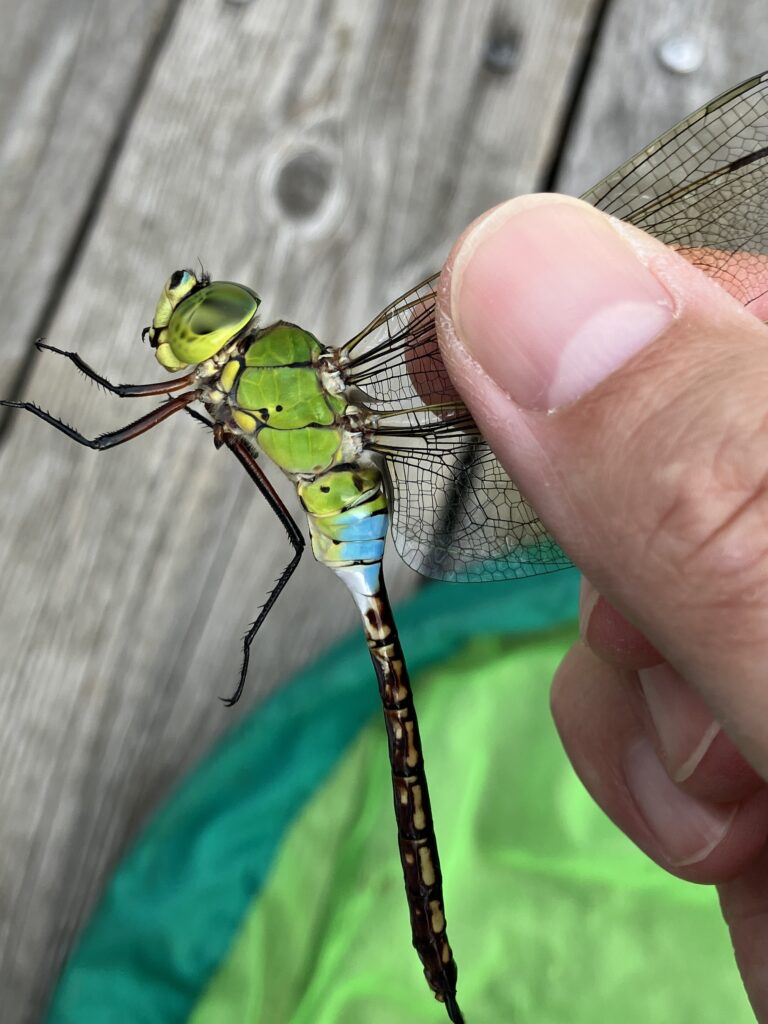 ギンヤンマ。市街地や小学校のプール付近でもわりと見かけるヤンマ。この時期になるとだいぶ飛ぶ速度が落ちてくるので採りやすくなります。