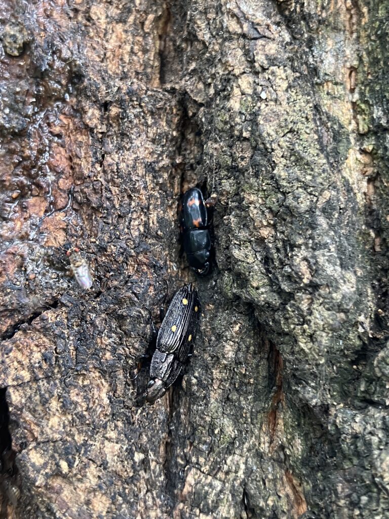ヨツボシケシキスイ(上)とヨツボシオオキスイ(下)。名前は似てるけど科レベルで違うやつ