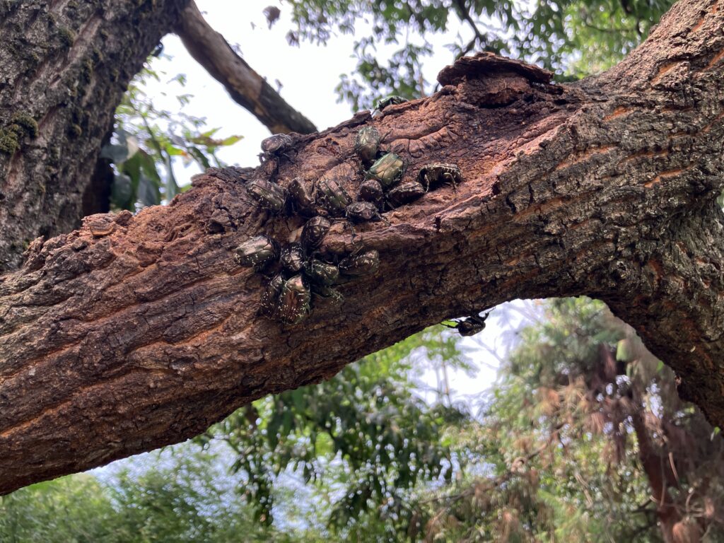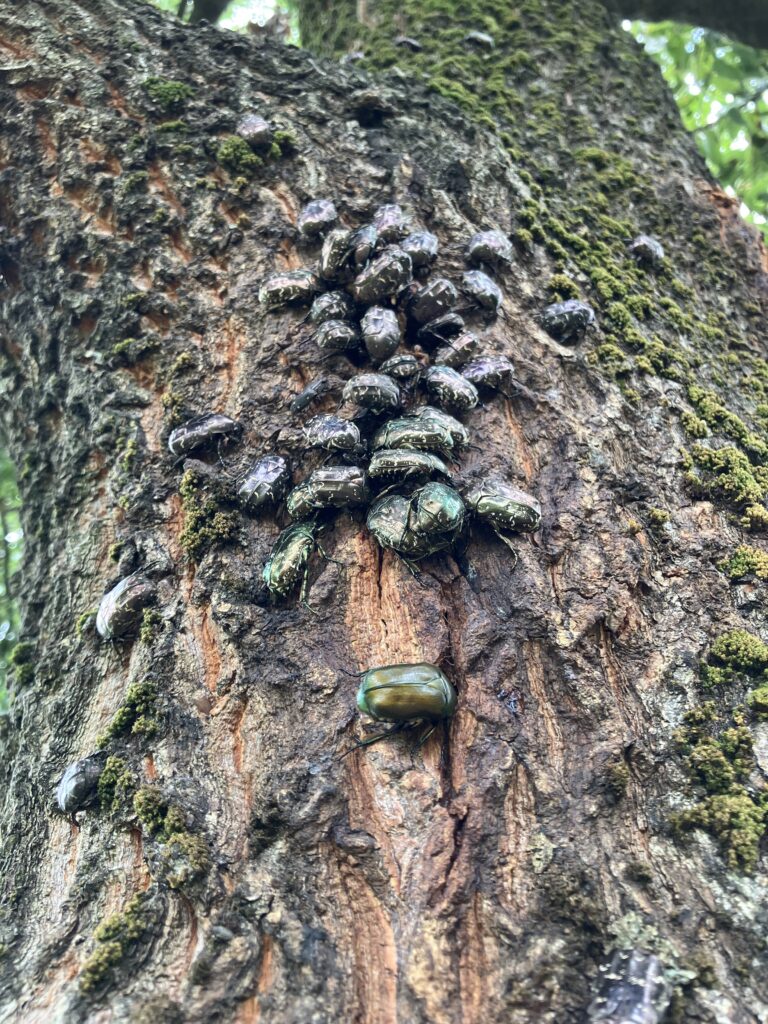 シロテンハナムグリの中に1匹だけカナブン。だいたいシロテン100匹に対してカナブン1匹くらいの頻度