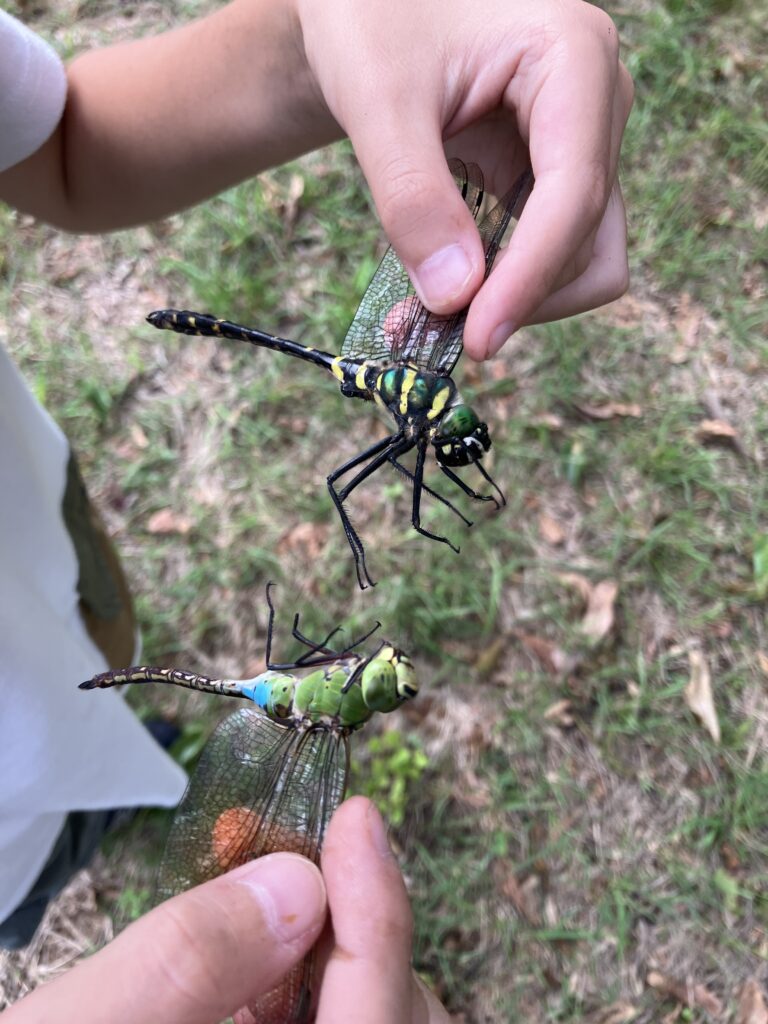 オオヤマトンボ(オス)とギンヤンマ(オス)。喧嘩していたところを2頭採り。