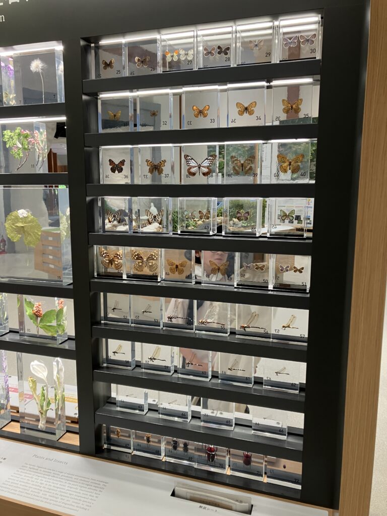 昆虫のアクリル標本の展示