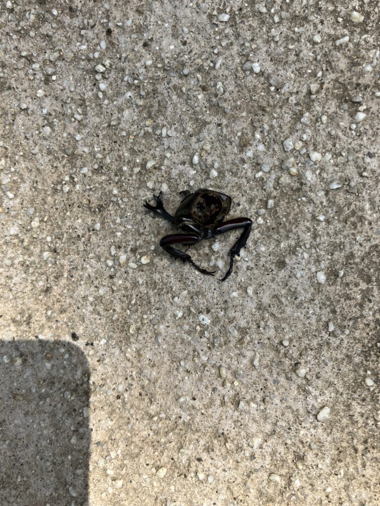 カブトムシの死骸が落ちてました。標高500m超えるとほぼいない印象ですが、どうやらここは標高750mでも生息してるようです。