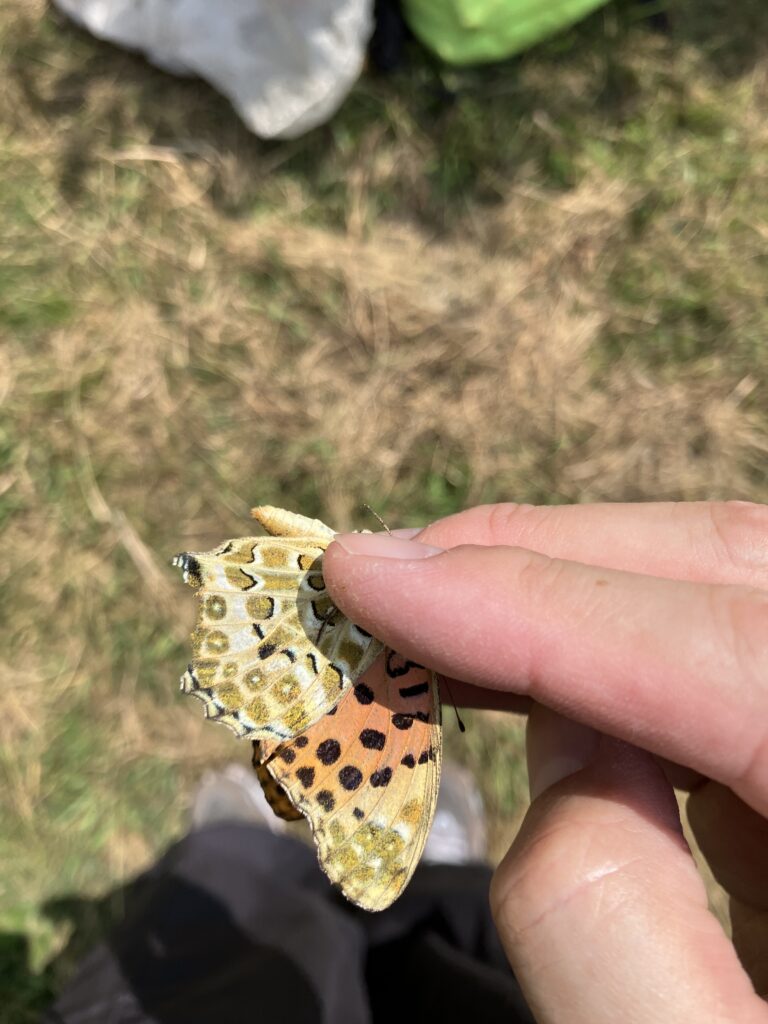 メスグロヒョウモンを追いかけていたミドリヒョウモン