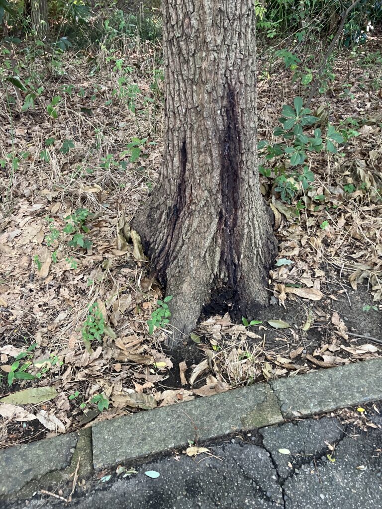 7月、8月と大量に出ていた樹液も枯れてました。臭いはするのでそれに釣られてかスズメバチが飛び回ってました。