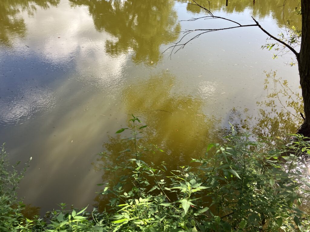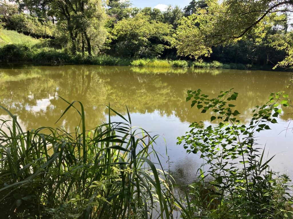 西池の様子。昨晩の土砂降りの影響でだいぶ増水して水が濁っています。