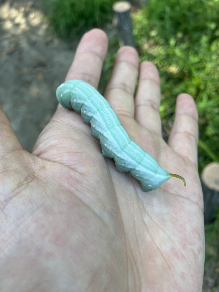 キイロスズメの終齢幼虫。丸々太った極太幼虫