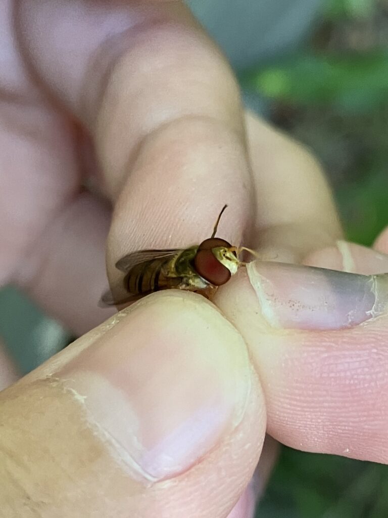 クロバネツリアブ。日本最大級のツリアブなんだとか。一瞬スズメバチに見間違えるほど