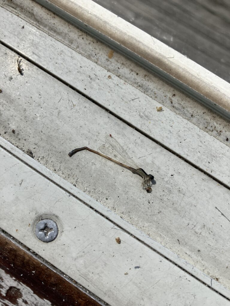 アジアイトトンボの死骸。水鳥の観察小屋?みたいなところに何体か落ちてました。